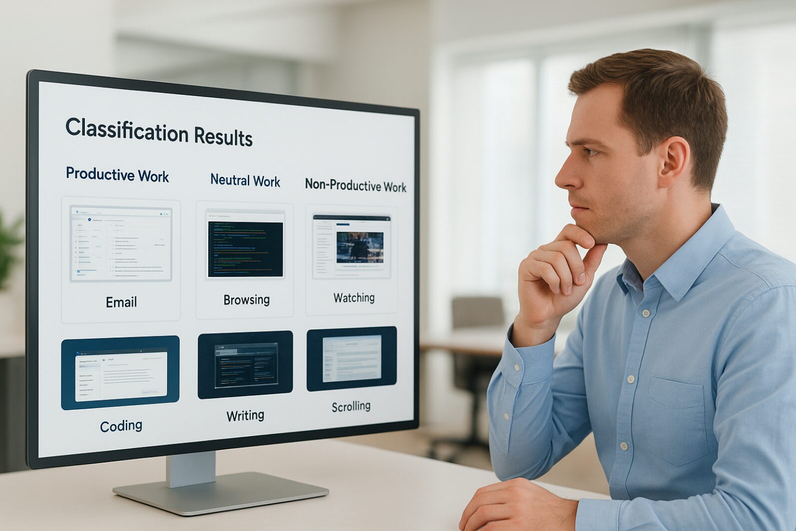 Our client, a global enterprise with a hybrid workforce, faced increasing challenges in tracking productivity across diverse teams working from different locations. Traditional employee monitoring tools provided screenshots and time logs, but failed to offer contextual insights into how employees spent their time or which activities contributed to business outcomes.